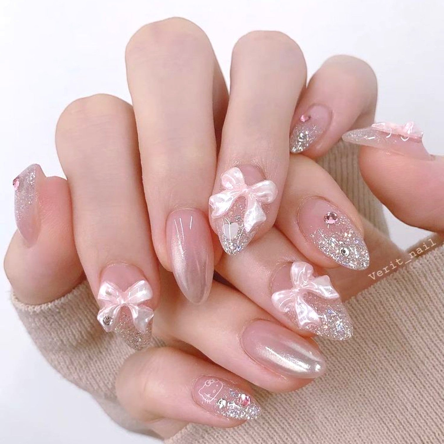 Blush Charm β Nude & Rose Ombre with Crystal Bow Accents
